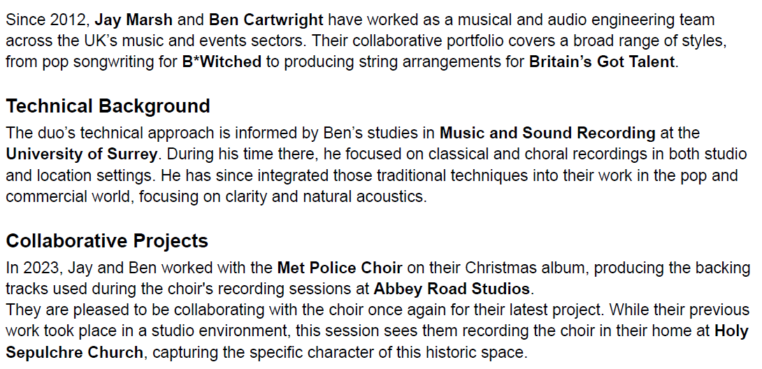 MPC Choir album being recorded in April 2026